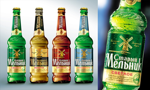Также изменению подверглась этикетка на самой бутылке – её печатают на блестящей металлизированной бумаге с более насыщенными и яркими цветами, а текст о преимуществах этого пива размещен теперь на золотой полоске. Символ бренда (мельница) остался не тронутым.